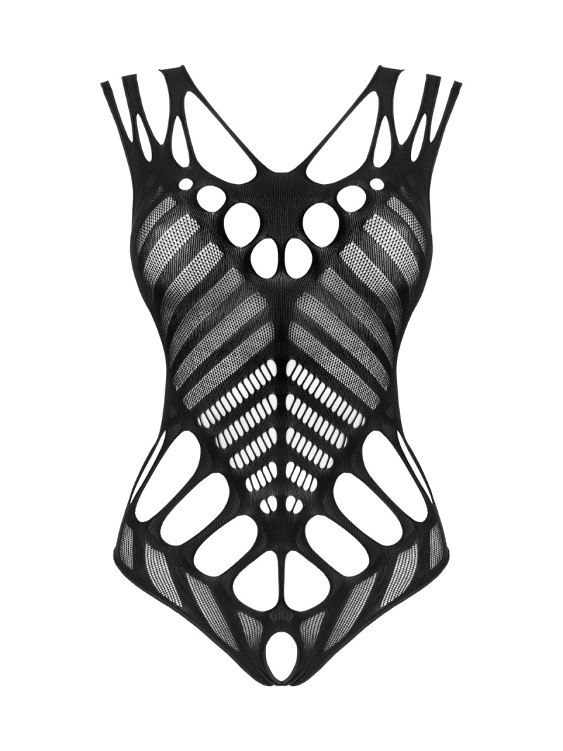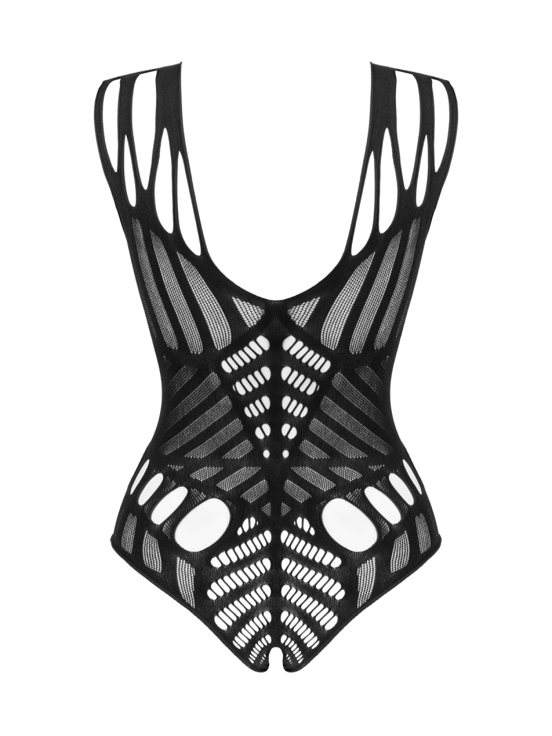 Acest body negru redefinește senzualitatea prin croiul său provocator și materialul moale, elastic, care se mulează perfect pe corp. Designul captivant este accentuat de decupajele îndrăznețe, evidențiind formele și oferind un efect vizual spectaculos.