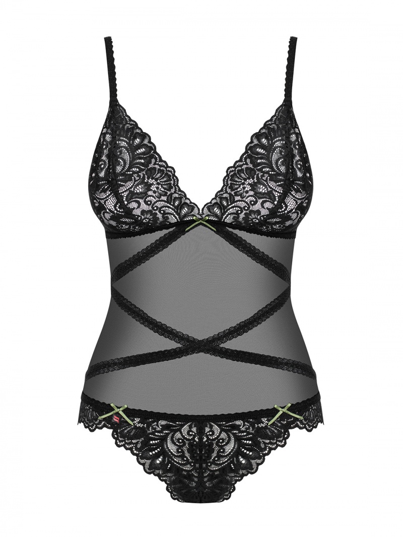 Body sexy din tul in combinatie cu dantela