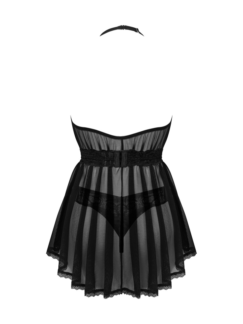 Babydoll din tul cu chilot brazilian si curelușă din dantela