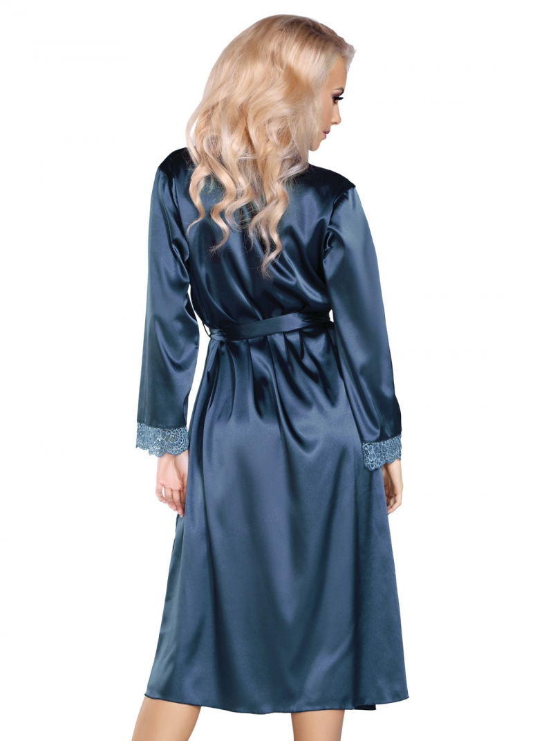Setul include o rochita, un halat trei sfert cu cordon si un chilot.