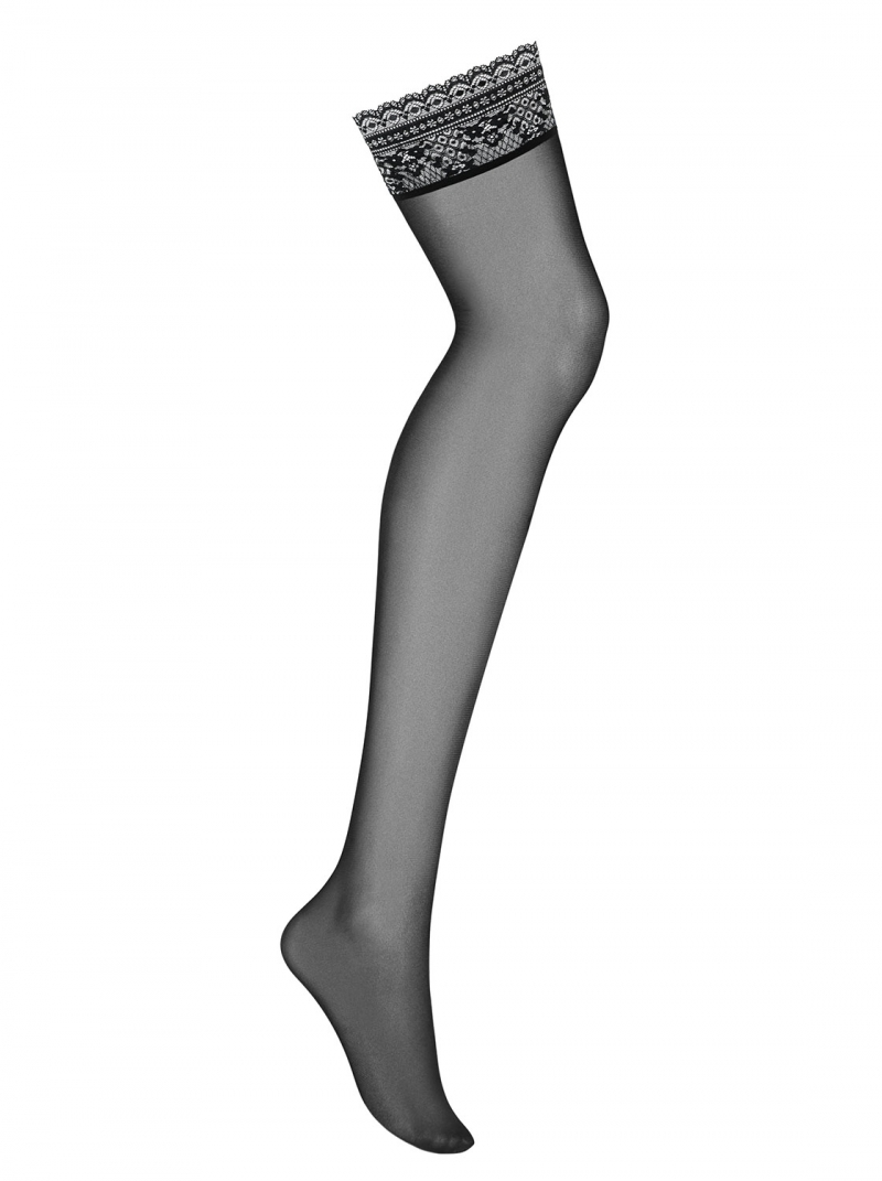 - ciorapi negri ornamentati cu broderie lata din dantela
