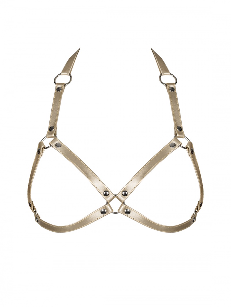 O croiala picanta intr-o culoare sexy, aurie, decorata cu nituri – hamul A765 iti va fura inima!