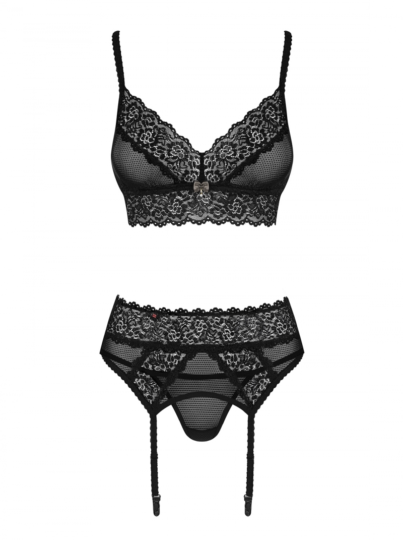 set compus din trei piese: sutien, portjartier, si chilot tanga