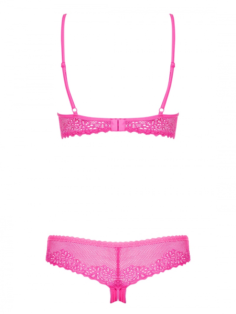 Setul este compus din sutien fara cupe prevazut cu sarme de sustinere si chilot crotchless.
